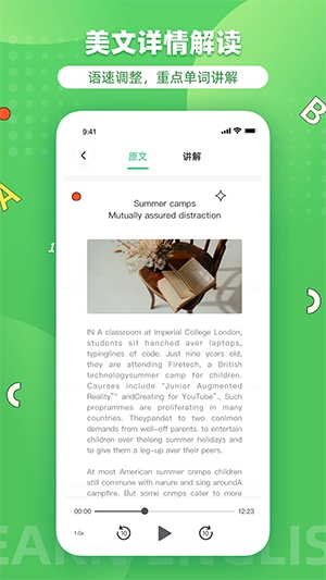 2、助力用户开展口语训练,促使口语能力实现飞跃式提升,日后能毫无压力地开口讲英语。