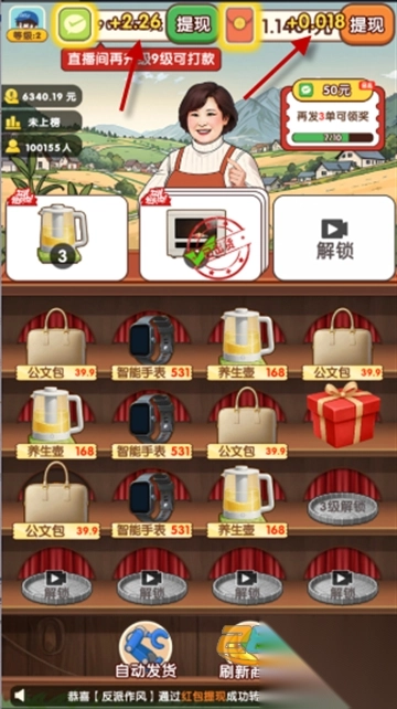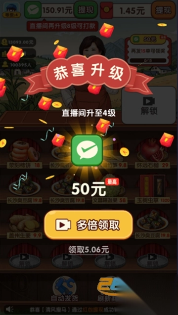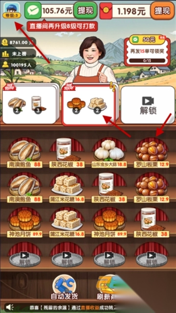 2、只需完成订单,就能持续提升直播间等级。随着等级提升,会解锁更多种类的商品,同时还能收获更为丰厚的红包奖励。
