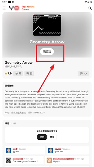 4、搜索或者选择想玩的游戏,进入详情界面。