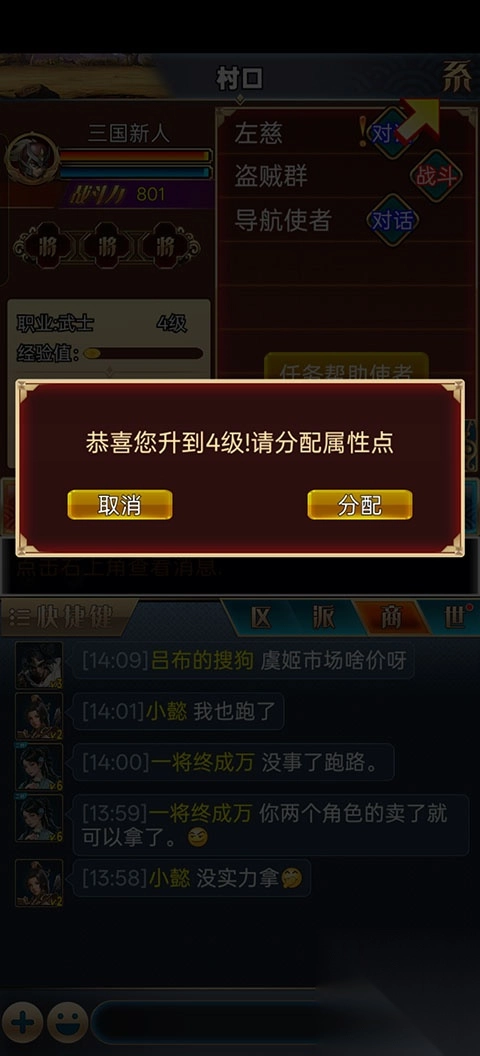 3、角色养成:玩家可以通过完成任务、战斗等方式获取经验值和金币,提升角色等级和属性。同时,还可以招募和培养副将,增强战斗力。