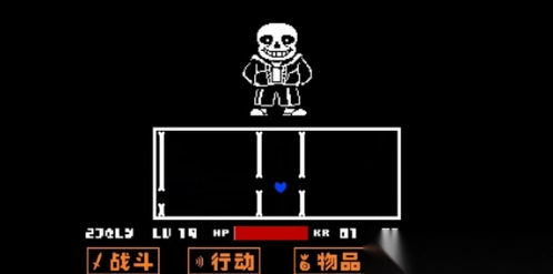 13.sans会放出战斗区的骨头和菜单区的骨头进行辅助攻击,选择攻击不用躲直接一刀下去,找准时机移动到物品,迅速按两下z键嗑药。