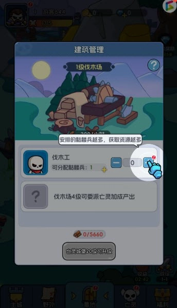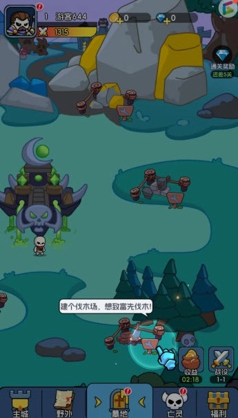 5、接下来搭建一个伐木场,如此便能获取大量资源。搭建完成后,需安排骷髅兵投入工作。