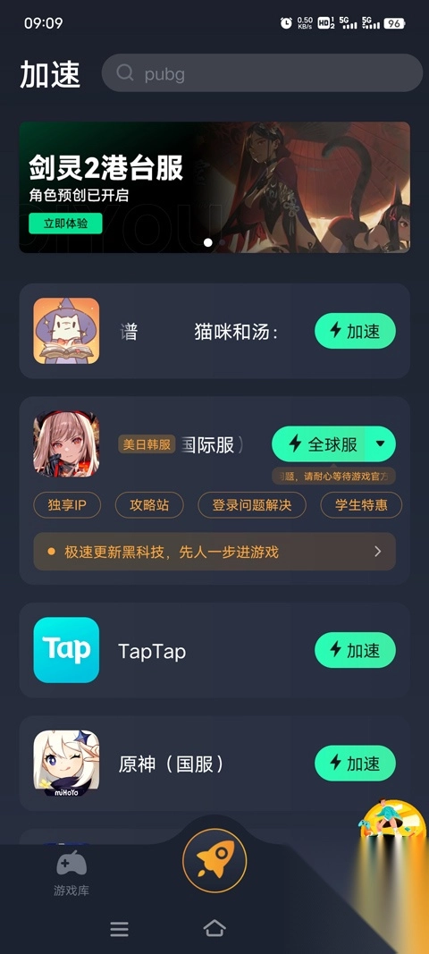 1. 于本站下载猫咪和汤魔法食谱国际服,此游戏启动需借助加速器。具体操作是打开奇游手游加速器,在其中找到该游戏,接着点击右侧的加速按钮。