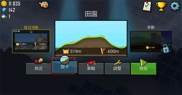 1. 玩家需双击打开正版的登山赛车国际服手游,随后要从众多关卡中挑选关卡进行闯关。