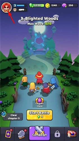 1、当进入游戏之后,点击游戏界面左上角的头像。