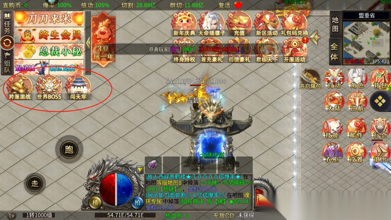 3、副本活动:设有多种副本,跨服激战,世界BOSS,闯天牢,需玩家协作配合,攻克难关获取丰厚奖励。还有各类限时活动,如资源抢夺、跨服竞技等,增加游戏的趣味性和挑战性。