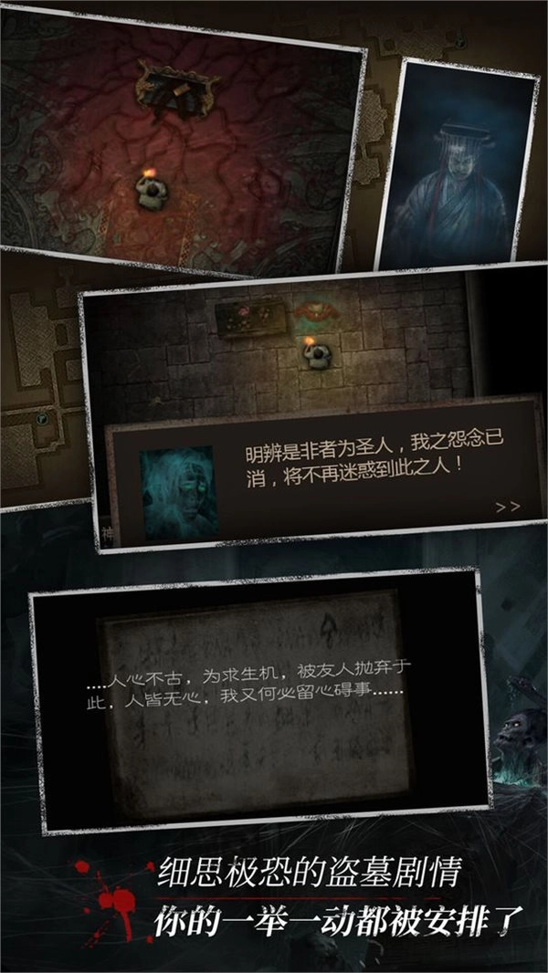 那平坦的墓道可能隐藏着致命陷阱,那火光照不亮的漆黑一角游荡着的是陪葬的孤魂,那一个个棺椁推开之后谁能知是祸是福……食物已经见底,火把也即将燃烧殆尽,你还要继续往前吗?