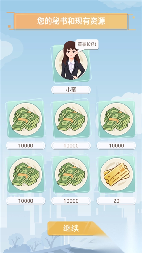 2、这个时候就需要选择你的第一批员工了,完成之后点击“继续”。