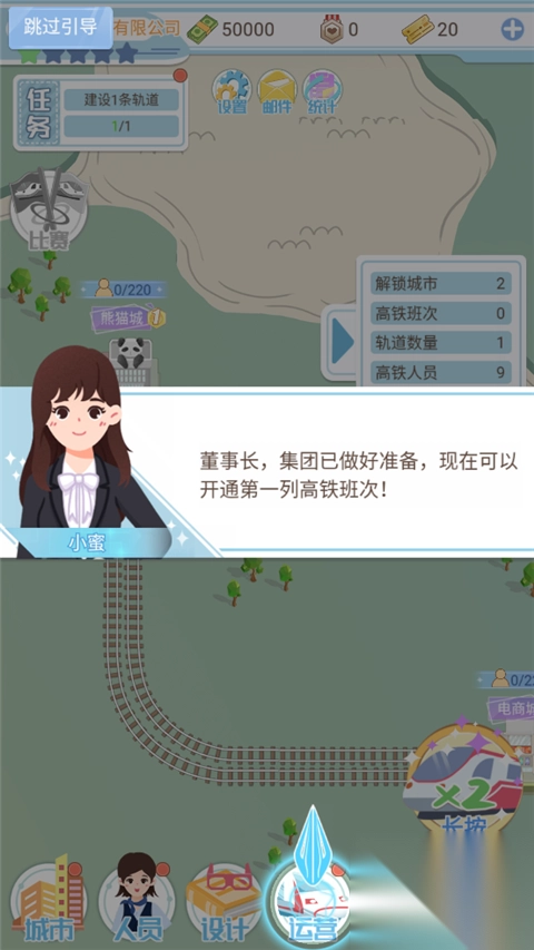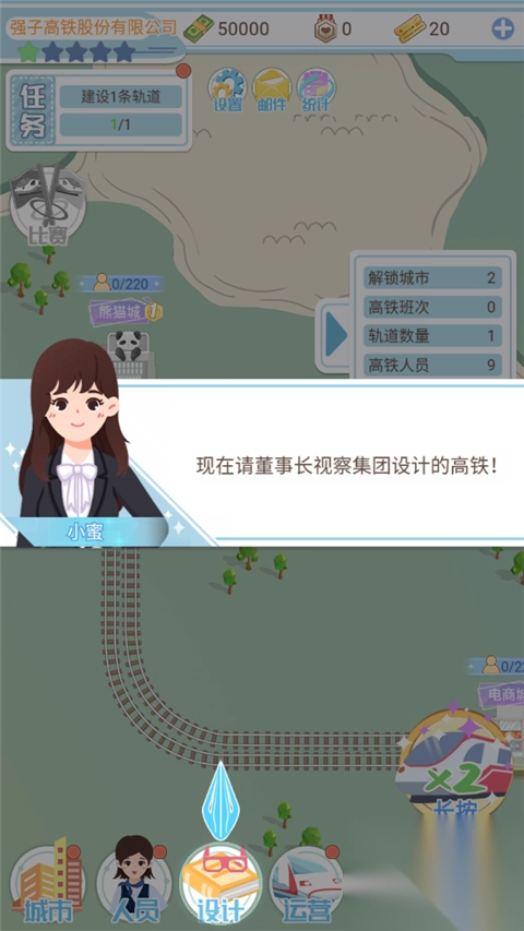 6、招商谈判,与广告商谈判,争取获得最大高铁冠名收入。 不断发展壮大集团,打造属于你的高铁帝国吧。