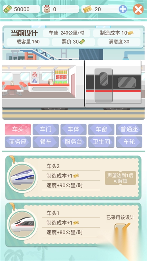 3、高铁设计,升级高铁外观及车内设施,致力于打造优质高铁。