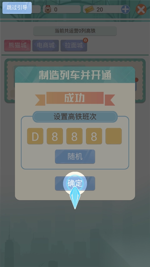 1. 玩家进入软件后,需先为自己的高铁集团取一个名字,或者随机挑选一个,然后点击“继续”。