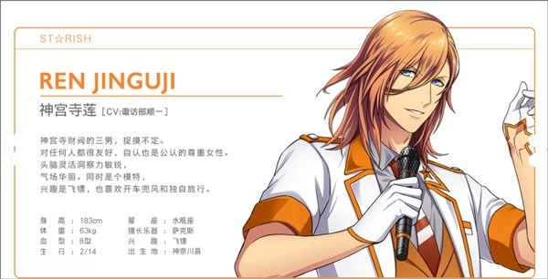 私生活被谜团包围的神秘偶像,偶像工作之外还会作词作曲。外表看不出他的毒舌,其实只是心直口快并无恶意,对于一些小事也抱有疑问并深入研究。