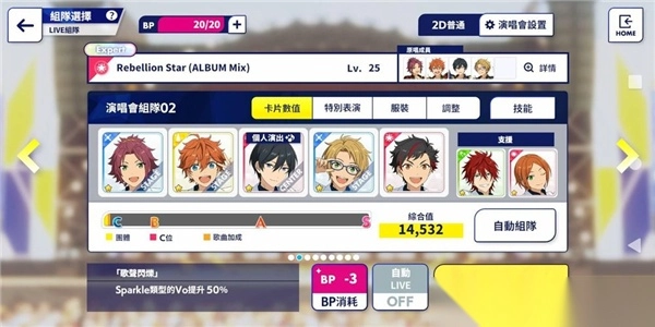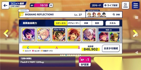 假设我要打「BIGBANG REFLECTION!!」的属性为「Flash (黄色)」,那原则上,我选择成员的条件就以「Flash属性」的卡为准。
