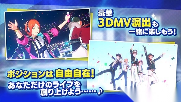 玩家可以在这个模式中以超真实3D角色的演唱会场景为背景,体验节奏音游,四种难度供你选择,不论是手残党还是音游高手,都能找到你的Stage!与此同时,还能享受豪华的3D MV表现和个性十足的他们带来的演唱会!游戏中支持玩家自由地设置C位和其他表演成员,给成员换装搭配,欣赏自己pick的角色带来的专属SPP表演,绽放独一无二的光彩!