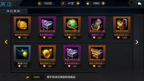 除去每晚领取的俸禄外,各个官阶可在皇城商店中购买的道具也有一定的限制,官阶越高,权利越大,可购买的道具种类也越多。
