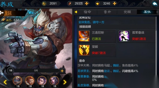 点评:全体25%减伤,非常少见的群防技能,据某人说,免伤是本版本的稀缺技能,因此魏延成为肉盾中的重要一员,而且单体输出不低。