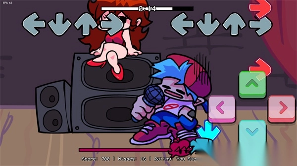 4、想要打败boss,你得跟着节拍和音乐,及时按下箭头。屏幕下方是游戏进度条,尽量让它靠左。要是你热衷于挑战手速,还喜欢体验不同的模组版本,那周五放克夜错误化模组整合版可千万别错过,快来试试吧!
