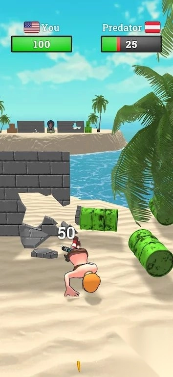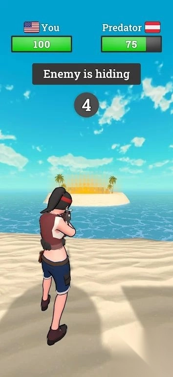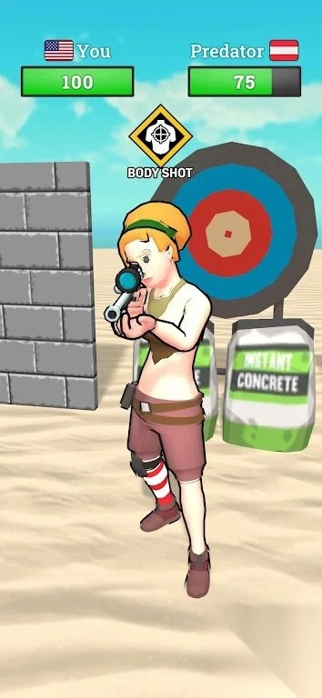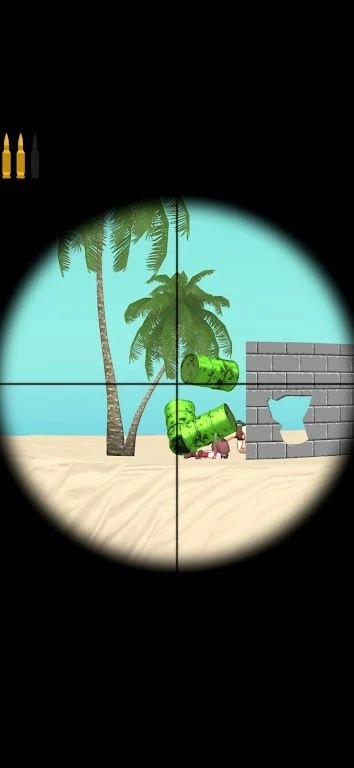 1. 玩家要在具有固定距离设定的小岛地图上,与对手进行狙击对决。在过程中,需借助掩体来躲避敌方发射的子弹,并且要伺机展开反击。