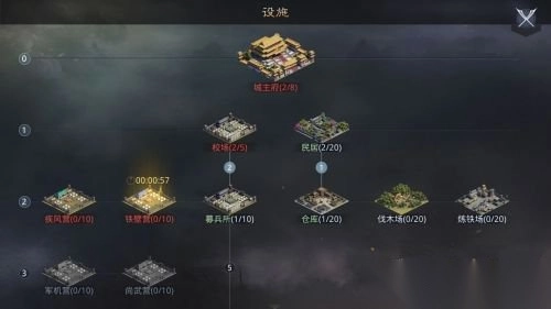 4、当积累到足够的资源后,便着手进行设施升级。首先要优先升级主城,之后再升级其他一些设施。校场的升级能够增加队伍数量,如此一来,在征战时就可以多派出几支队伍,从而加快自身发展进程。当资源充足时,就可以对各类设施进行升级,这是发展壮大的根本基础。