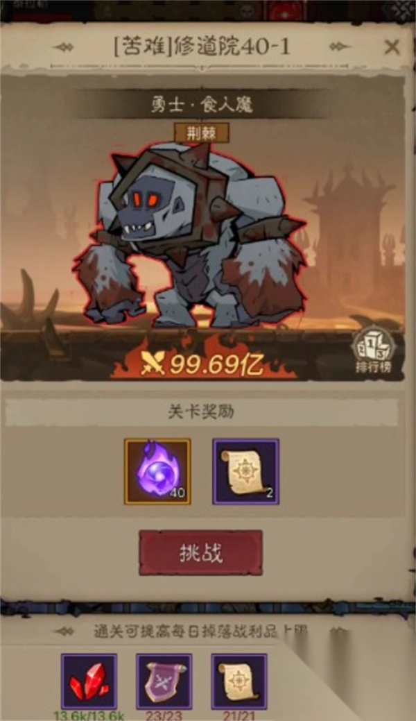 2、刷图建议选择“狂乱-橙色叠刺 + 践踏-强劲 + 钢铁之肤-翻涌 + 狂战之怒-橙色冲天”这一组合,该组合可使装备掉落率提高35% 。