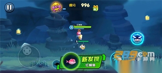 在游戏里,一侧设有摇杆,用于操控小鱼移动,另一侧则分布着进食按钮、加速按钮以及技能按钮。玩家要操控小鱼在海洋里游动,寻觅可供食用的小鱼。