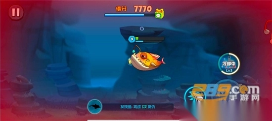 3、要是遇到其他大鱼,生命值就会受损,当生命值耗尽时,游戏即宣告结束。