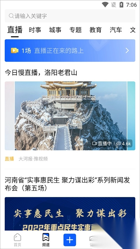 豫视频app,是河南日报报业集团匠心打造的资讯平台,专业性与权威性兼具,服务周全且资讯海量。突发事件会在此及时发布,还汇聚了河南各地的民生新闻、生活服务以及教育文化内容,方便河南一亿民众通过手机知晓家乡最新动态。平台页面设计简约,操作便捷。当前,整个平台页面由四部分构成,首页承担了软件的大部分功能,热门资讯信息免费供大家浏览,这些资讯覆盖时政、经济、社会、文化、教育、科技、娱乐、体育、生活等众多领域。