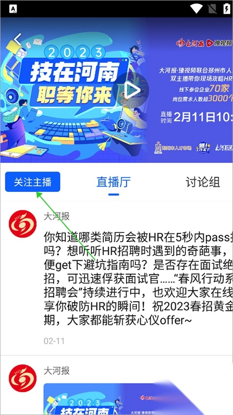 4、用户可以通过点击【关注主播】进行直播预约