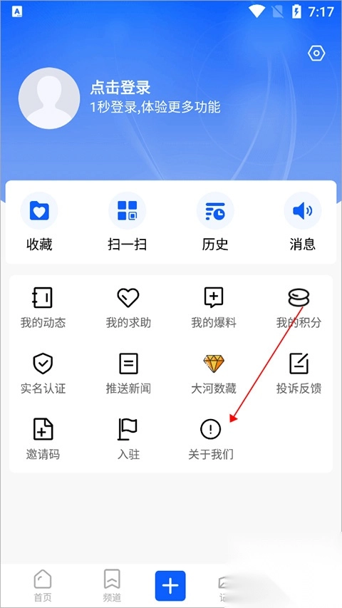 1、用户可以进入【我的】页面点击页面中的【关于我们】(下图红色箭头所指区域)