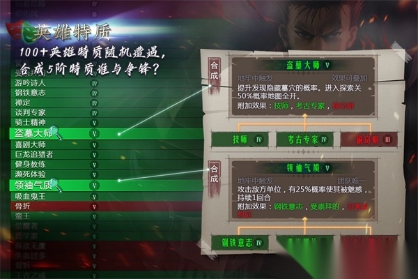 5、获得特质:英雄可以通过很多途径获得一些效果不同的特质,强化英雄的战斗、探索、续航等方面能力。