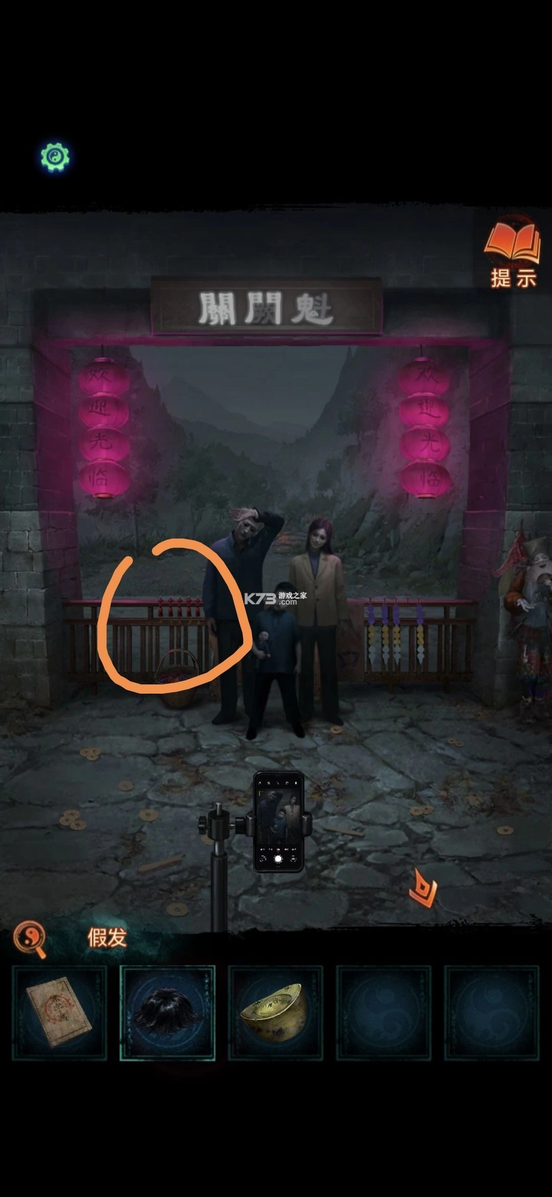 将假发给男人,玩具车给小孩,小孩暴打玩偶,点击手机帮忙拍照,获得冥币