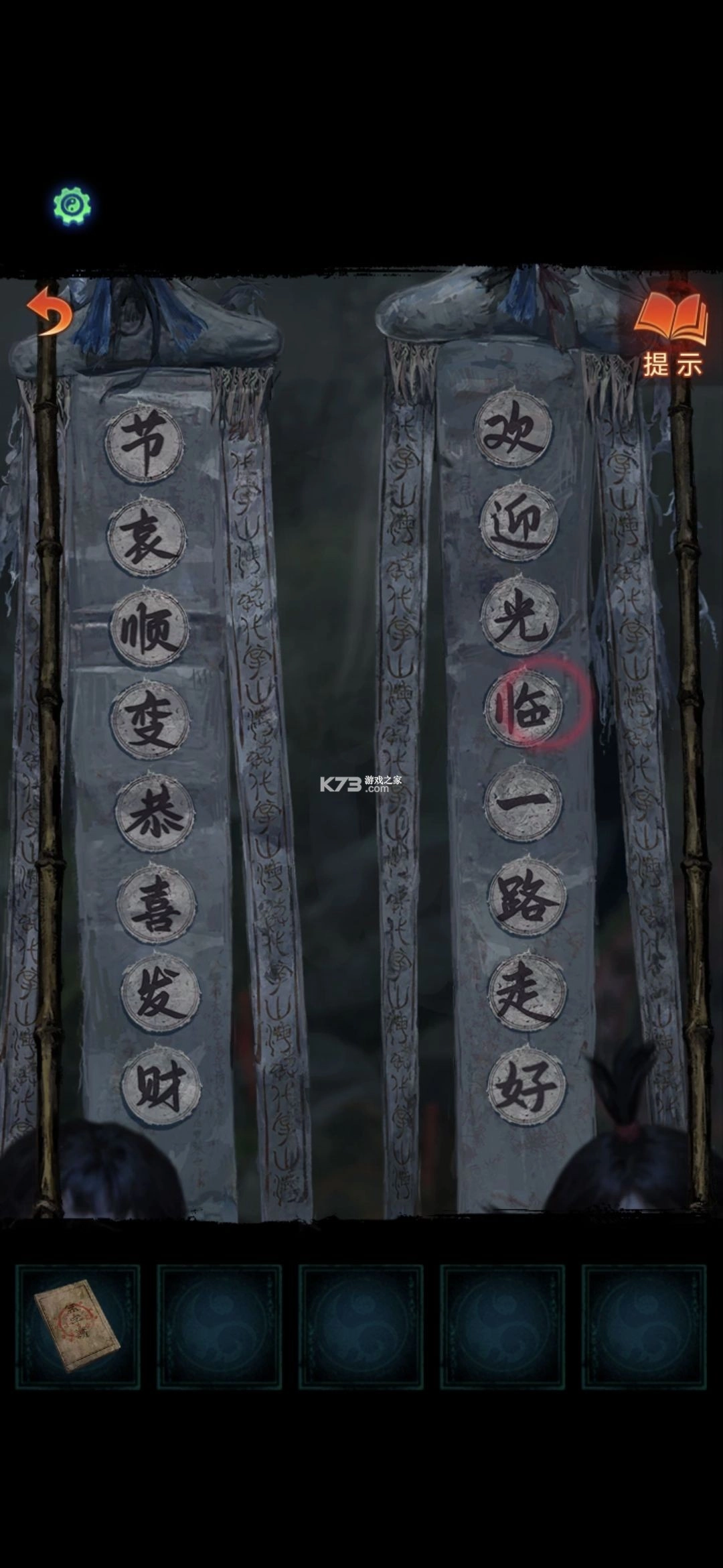 用便携风扇吹倒纸人,查看书籍,根据书上线索可知挽联上的字的顺序,调整后第一章完