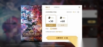 ●畅玩卡:测试期间提供30元/15天与60元/30天两个档位。