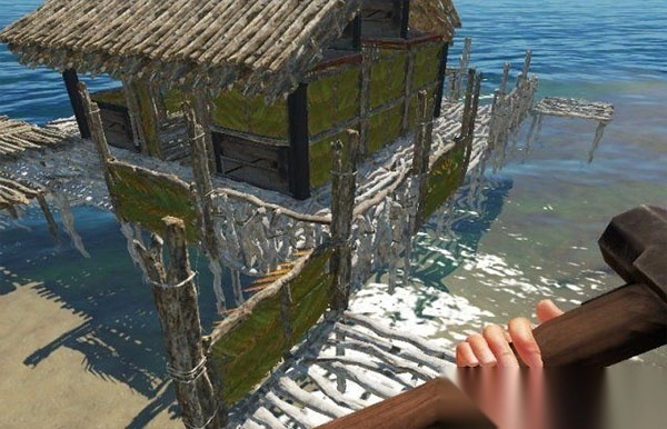 这是游戏里默认的半墙,不管什么材料 都默认带有柱子(就是触角),怎么去掉它呢,比如我想在这个墙角造围栏,先造旁边的绿色半墙,后造白色,然后在砍掉绿色,柱子会就都消失了。