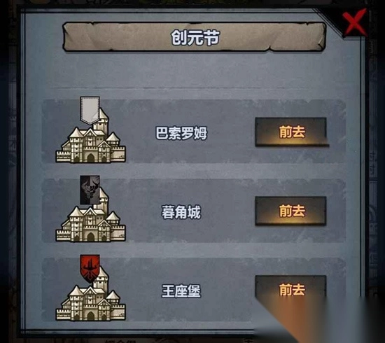 创元节在12月举行,就在亡人节之后,其对应的雕像就是佐亚。我们在修建佐亚神像之后才能参加创元节。创元节在上图中的这三个地方,巴索罗姆、暮角城以及王座堡,如果不小心忘了,可以先去跑法拉。