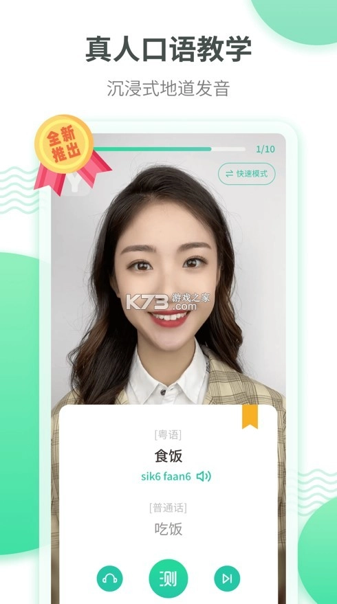 粤语教师真人出镜授课,内容覆盖日常生活、港剧台词、粤语歌曲等主题,通过真人互动教学学习发音口型,让你沉浸式学习地道粤语。
