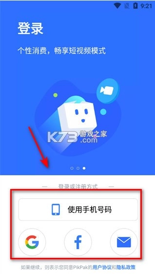 1、当用户打开软件时,会发现多种登录选择:谷歌账号、facebook账号、邮件或手机号。对于首次使用的用户,需要先完成注册流程。