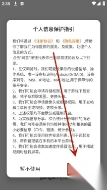 首先下载并安装gamgam电竞app,安装完成后打开该应用。进入应用界面后,点击“同意”选项,以表示同意隐私政策。