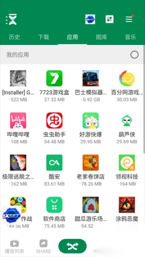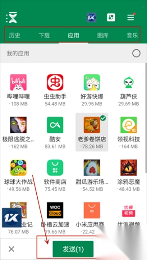4、于Xender应用程序里,挑选打算传输的文件,像照片、视频、音乐、应用程序以及文档等。