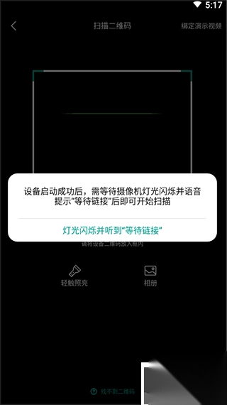 3、开启摄像机,听到语音提示,点击已听到等待连接。