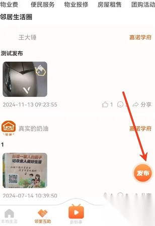 1、用户需要进入“邻里互助”社区,可以在线查看社区的动态。