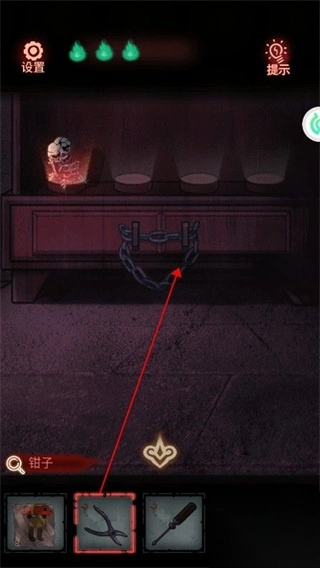 11、用【钳子】剪断铁链,打开柜子,拾取【娃娃】。