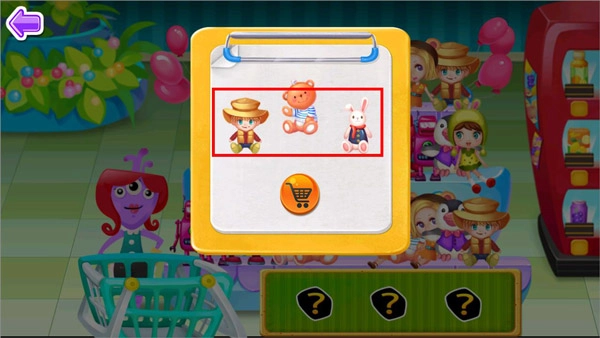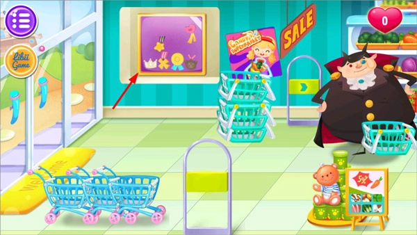 1. 开启游戏,欢迎来到糖糖的超市。瞧瞧前来的顾客,先给他们提供一个购物工具,接着就能陪他们逛超市啦。