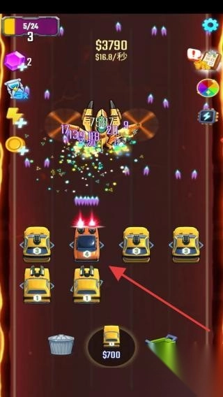 2、点“空位”放新车,组合火力(导弹、光束),自动射击清屏,赚金币($3790→$2318)。