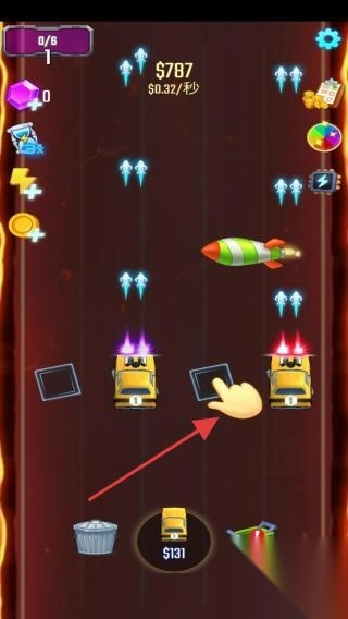1、拖橙色车与黄车合并,升阶战车,解锁新车型(如“大兵”),提每秒收益($16.8/$18.16)。