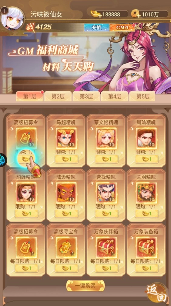 4、然后还与GM商城,都是1元宝随便买。