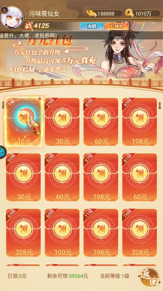 3、然后再是万元红包,不过这个是有等级要求的。