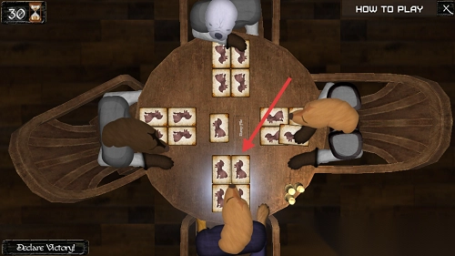 4、随机事件:打牌到第三回合可能突然闯进喝醉的犀牛,要么花硬币请它喝酒要么等着看牌桌被撞碎。