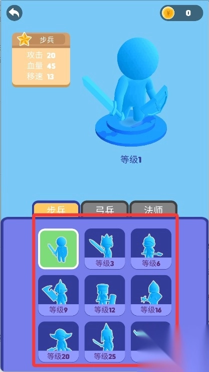 1、进入游戏后首先可以选择我们的士兵的类型。