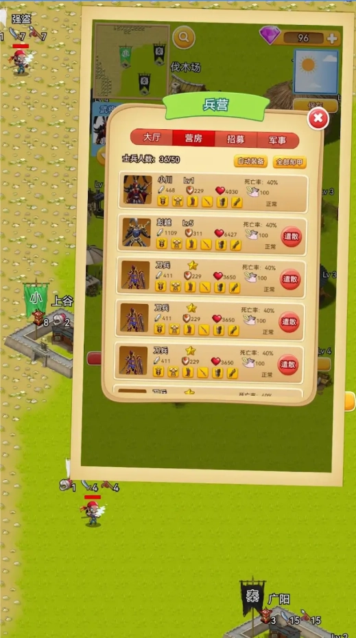 在秦朝末年的游戏设定里,玩家要通过招募士兵、收集资源以及搭建防御工事等方式,来提升自身实力。游戏中有着丰富多样的资源与建筑,每一种都具备独特的功能和专属的升级路线。玩家务必合理规划资源分配,并制定恰当战术,从而有效应对瞬息万变的战局。